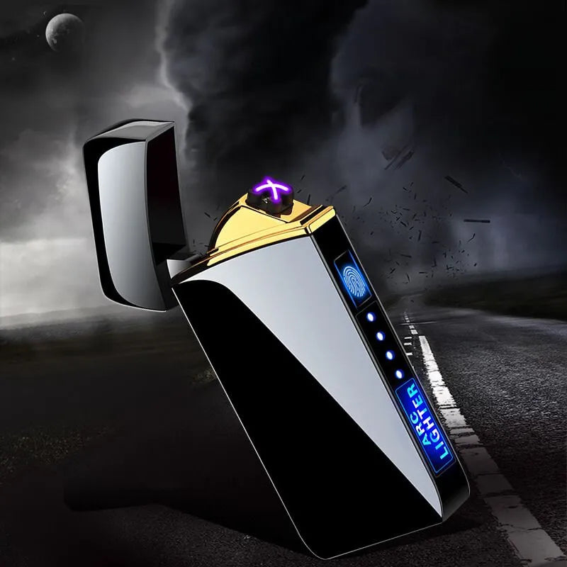 This electric lighter is equipped with dual arc ignition and a fingerprint sensor for secure and easy activation. The elegant design features an LED display that shows battery status. Wind-resistant and weatherproof, it's ideal for both indoor and outdoor use.
