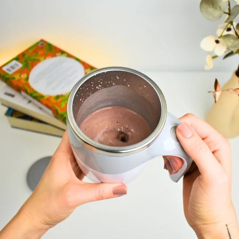 The smart self-stirring cup is ideal for mixing coffee, milk, shakes or powder drinks quickly and efficiently. It uses magnetic induction for automatic stirring, eliminating the need for a spoon. The ergonomic lid prevents spills, making it suitable for use even in the car during driving.