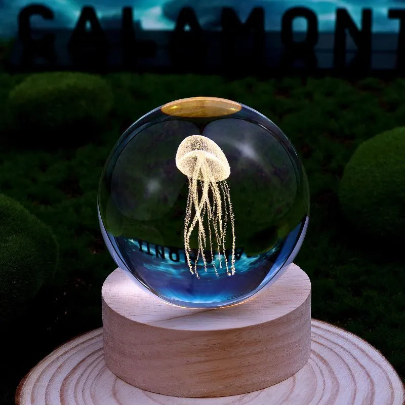 This night light creates a warm and peaceful atmosphere, perfect as a desk, nightstand, or gift decoration. The elegant design features a laser-engraved crystal globe with a 3D solar system.