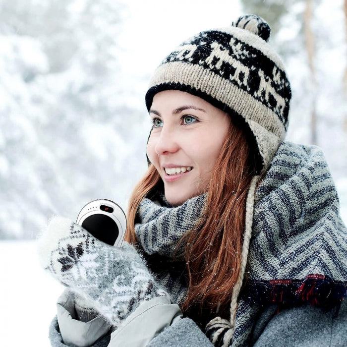 Acest dispozitiv este un incalzitor de maini reincarcabil cu functie de baterie externa (powerbank), ideal pentru zilele friguroase. Poate fi folosit pentru incalzirea mainilor sau pentru incarcarea telefonului prin portul USB.
